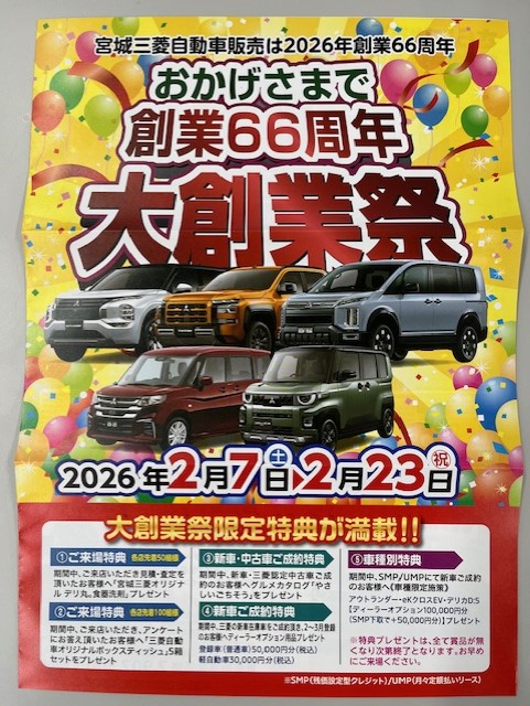 今年の大創業祭は、「歴代最強のデリカD:5」、「超新型のデリカミニ」、PHEVならではの力強く心地良い走りの「アウトランダー」等、目白押しの車が勢揃いです!!!