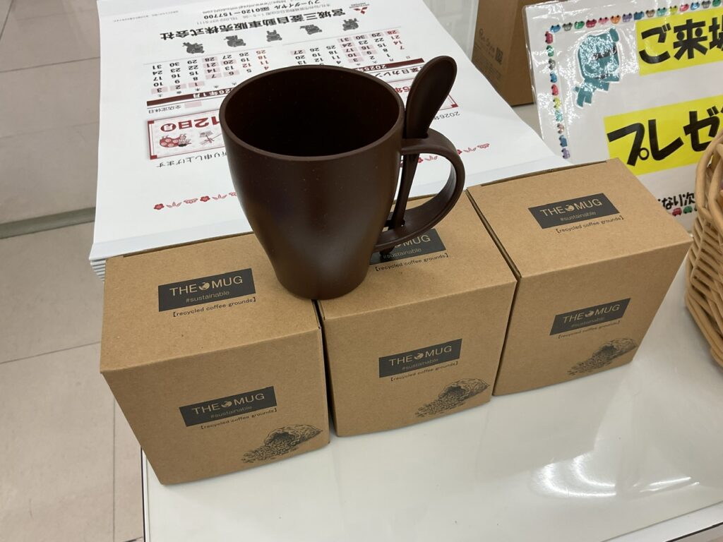 石巻店の来場プレゼントはこちらです!繰り返し使えるカイロとスプーン付きのマグカップ準備しておりました!
