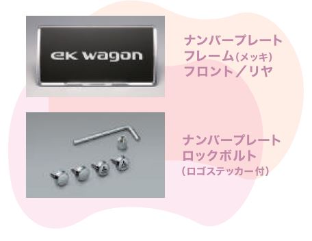 eKワゴンをキリリと引き締めてくれるアイテム「メッキナンバーフレーム」装備♪