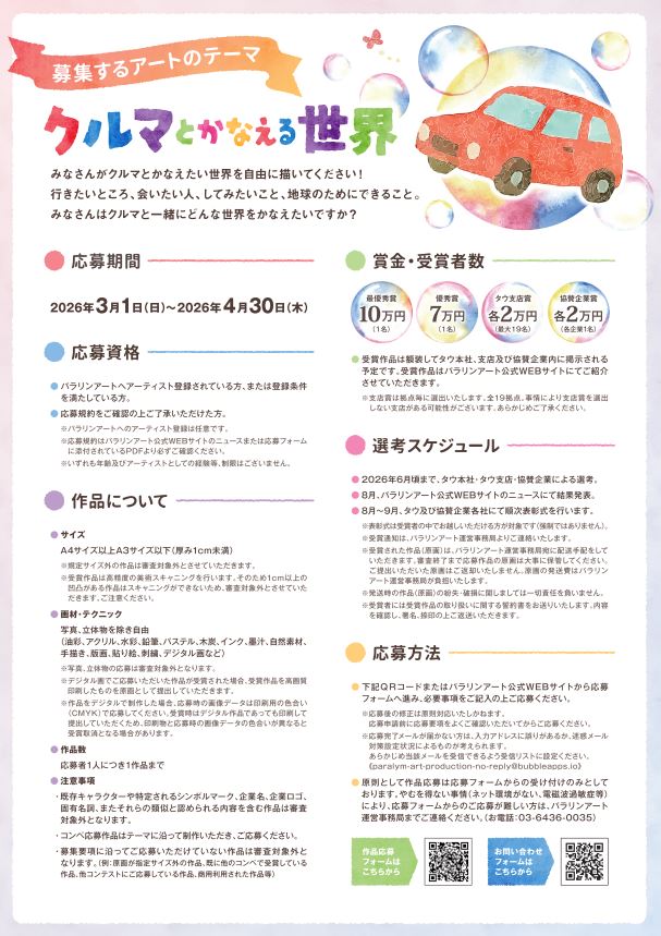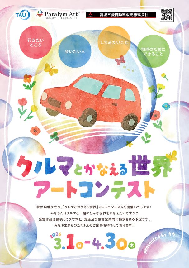 昨年に引き続き、宮城三菱自動車販売、今回初となる弊社グループ会社の岩手三菱自動車販売は、第8回を迎える株式会社タウ様が開催する「第8回タウパラリンアートコンテスト」へ協賛しております。